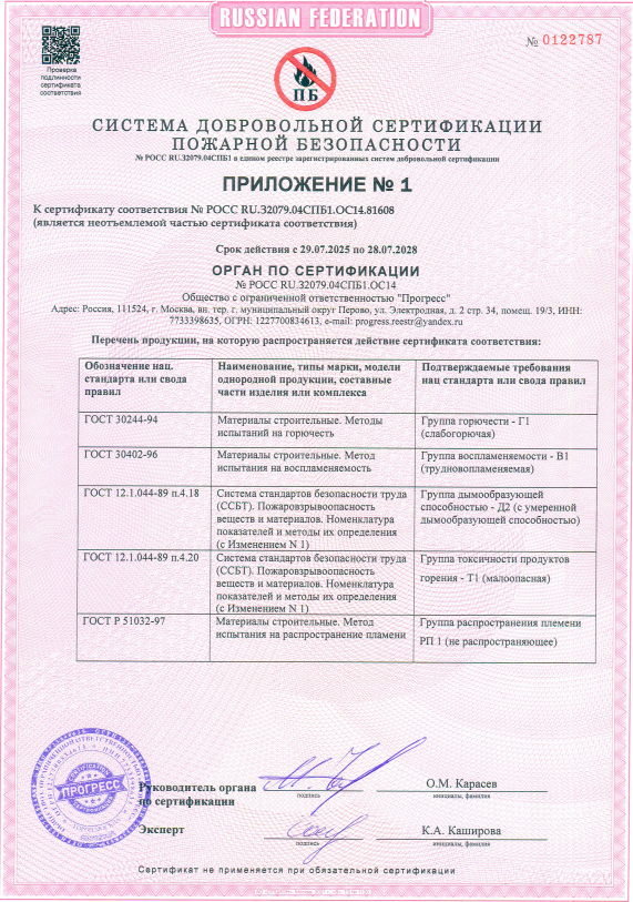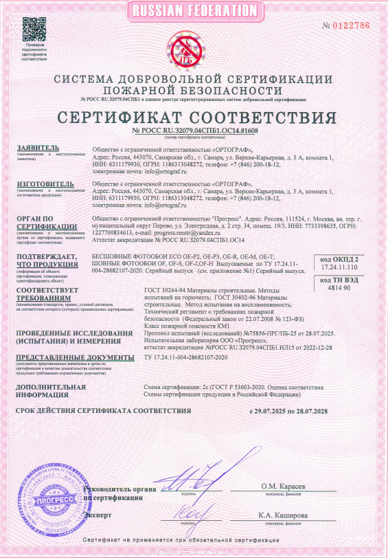 4. Пожарный сертификат бесшовные Eco обои гладь и шовные фотообои OF.
