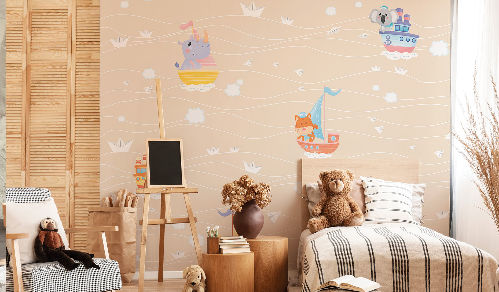 Вы обязательно подружитесь с этими забавными героями. Милые зверюшки живут в своем маленьком городе, в лесу, путешествуют на воздушных шарах и велосипедах, самолетах. Также сюда входят новые детские карты мира. Все дизайны выполнены в нескольких цветовых вариациях, чтобы вы могли подобрать гармоничный вариант для вашего проекта комнаты.