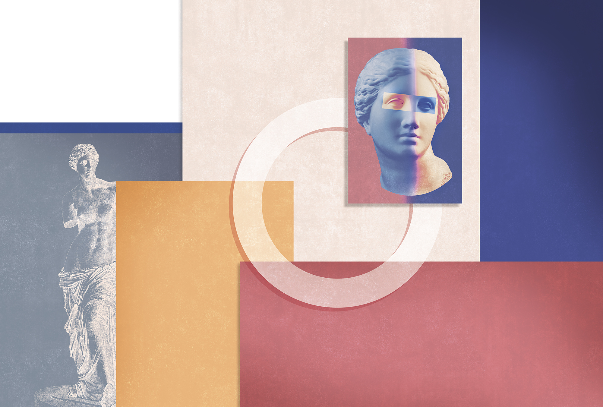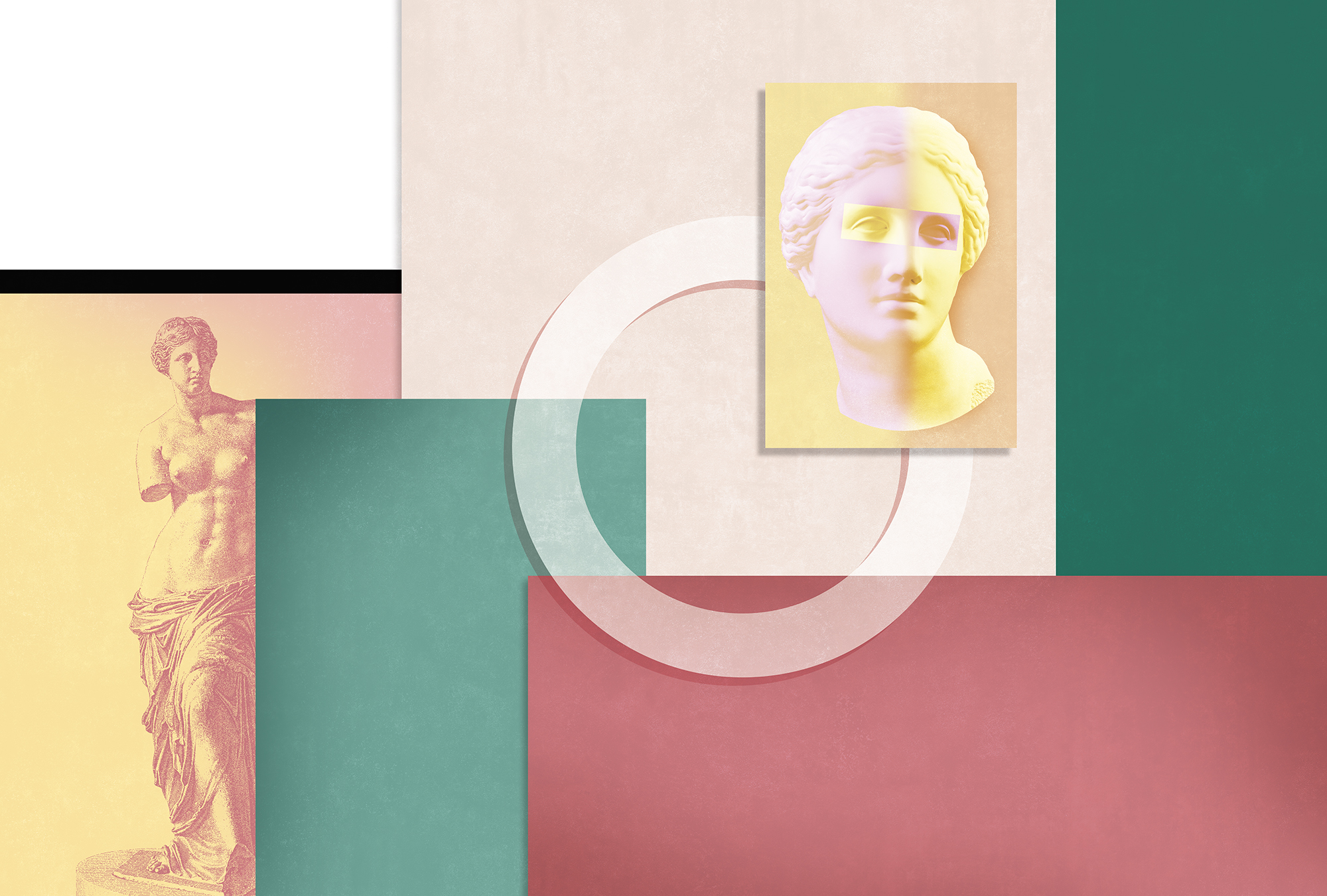 Коллаж с мужской скульптурой